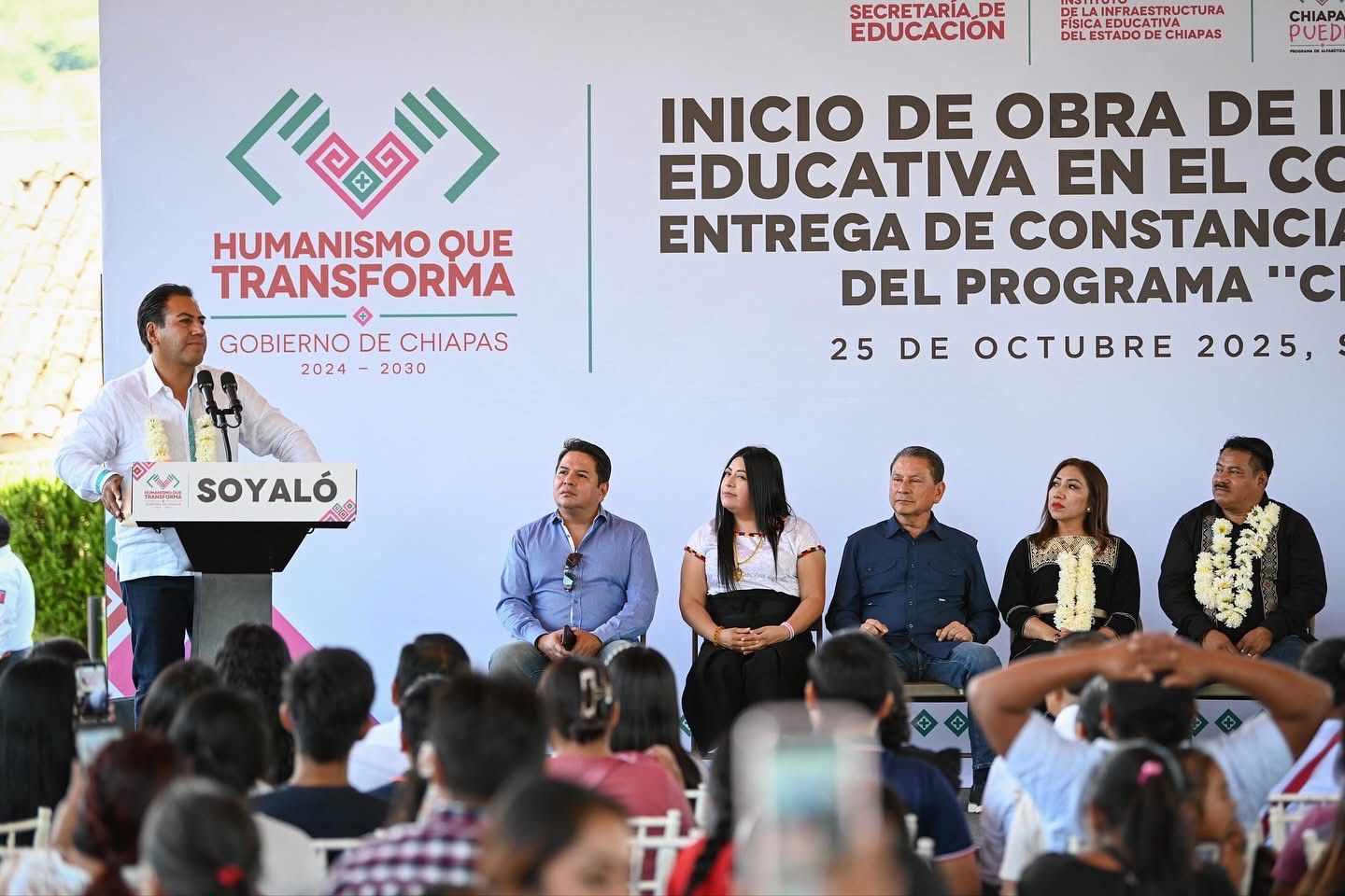 El gobernador Eduardo Ramírez Aguilar visitó el municipio de Soyaló, donde fortaleció la infraestructura educativa e impulsó acciones en materia de salud, alfabetización y capacitación. En este marco, destacó que, tras recuperar la paz, su gobierno prioriza la educación para cumplir una de las aspiraciones de la Nueva ERA: ganar la batalla contra la ignorancia y alzar bandera blanca como símbolo de que el pueblo de Chiapas sabe leer y escribir.